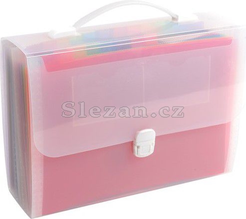 Atraktivní velkoobjemová aktovka s kapsami vhodná k přehledné evidenci, uchovávání a bezpečnému přenosu dokumentů a drobných předmětů. Vnitřek rozdělen barevnými záložkami na samostatné sekce. Dokumenty tak lze třídit dle abecedního nebo číselného pořadí. Široké otevření pro snadné zakládání. Dokonalá ochrana dokumentů před vlhkostí a nečistotami. Bílá přezka a dvě malé kapsy na vizitky na přední straně. Pevná rukojeť pro pohodlné přenášení. Kombinovatelné s dalšími výrobky řady Crystal.