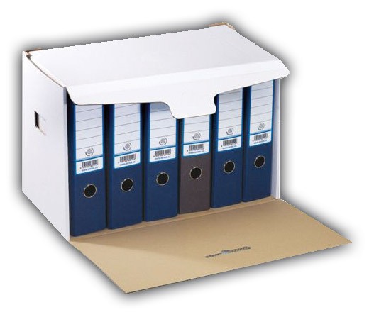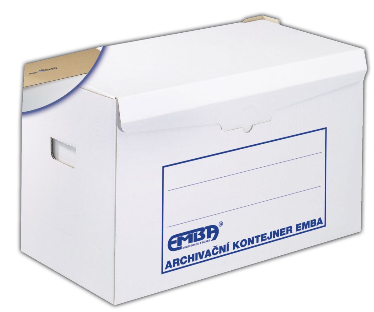 Kontejner je vyroben z kvalitní třívrstvé vlnité lepenky B/H. Pro uložení 6 ks pořadačů 8 cm nebo 10 ks pořadačů 5 cm. Možnost stohování. Rozměry: 500 x 330 x 300 mm. Bílá barva, modrý potisk.
