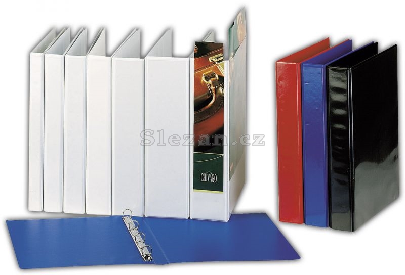Plastový, dvě kapsy pro označení hřbetu a čelní strany čtyřkroužková „D“ mechanika (kromě 30 mm).