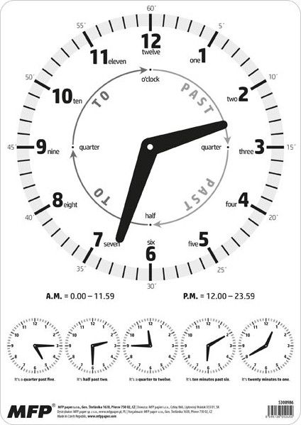 Dětské papírové hodiny bez obrázku - Didaktická pomůcka, dobře využitelná k výuce času u dětí předškolního věku nebo u prvňáčků. Tyto cvičné hodiny nesmí chybět Vašemu dítěti při nástupu do první třídy základní školy. Vychytávkou těchto dětských hodin jsou i popisky v anglickém jazyce, tudíž jsou ideální pomůckou v hodinách anglického jazyka. Upozornění: Nevhodné pro děti do 3 let. Nebezpečí vdechnutí a spolknutí malých částic.