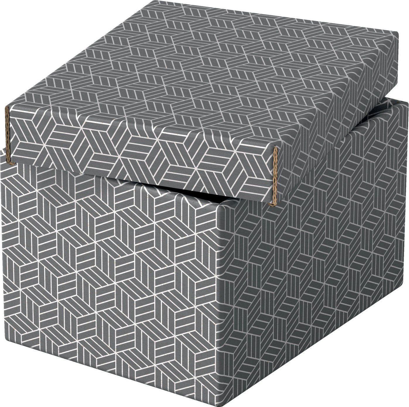 Sada tří malých lepenkových úložných boxů s moderním a stylovým geometrickým designem.