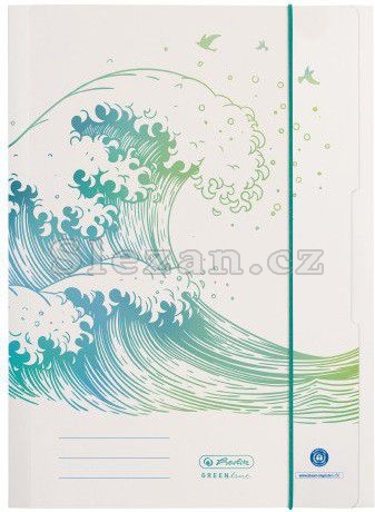 GREENline, z recyklovaného papíru se 3mi vkládacími klapkami, gumička na zapínání.