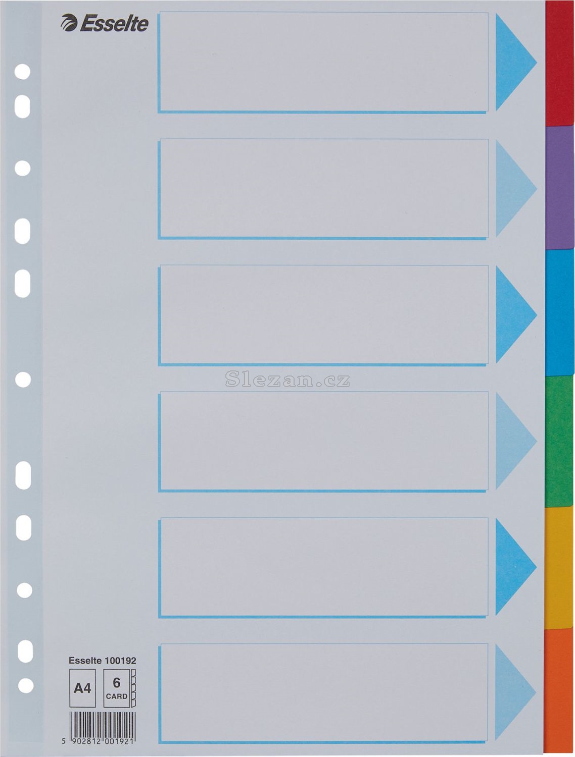 Popis Kartonové rozlišovače, A4 - 6 listů