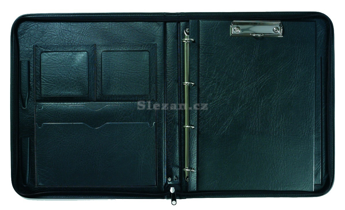 Desky formátu A4 s mnohostranným využitím. Vybaveny jsou 4 kroužkovou mechanikou a vyjimatelnou psací podložkou s klipem a kapsami v několika velikostech pro uložení dokumentů od formátu A4 až po kapsy na CD. Samozřejmosti jsou i kapsy na tužky, takže Vaše dokumenty budou přehledně uloženy. Diplomatka je uzavíratelná na zip . Povrch z materiálu imitace kůže hnědá a uvnitř barva černá.