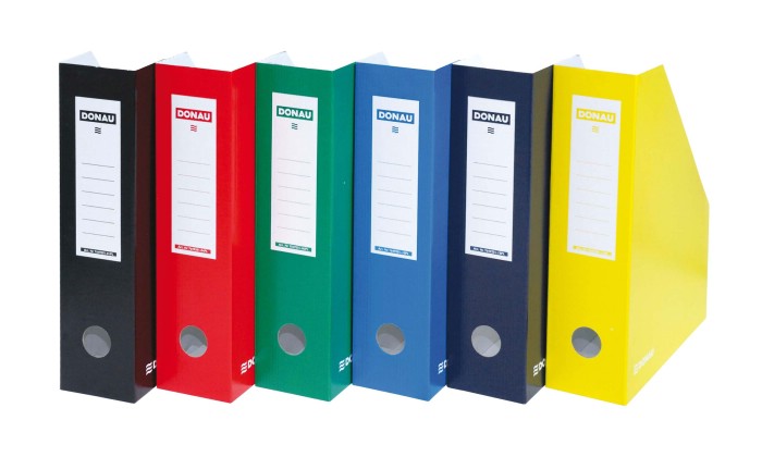 Archivní krabice A4 z lakované lepenky, šířka 8 cm, natištěný štítek. Rozměry: 80x255x320 Různé barvy.