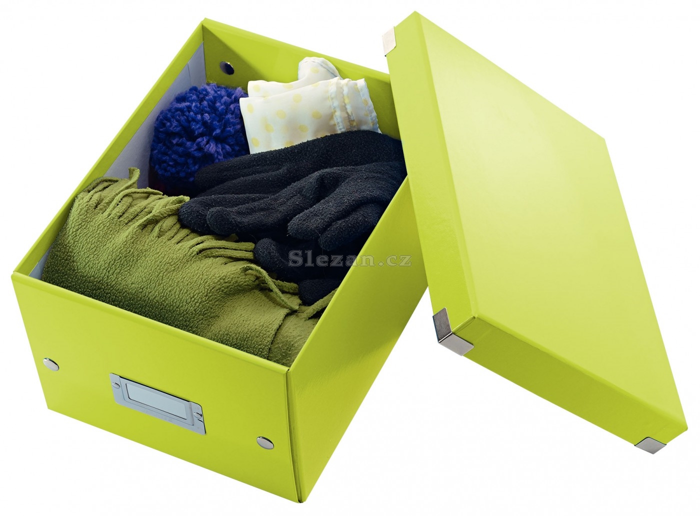 Stylová skládací krabice s víkem a s rámečkem na štítek. Na dokumenty formátu A5 v zářivých WOW barvách.