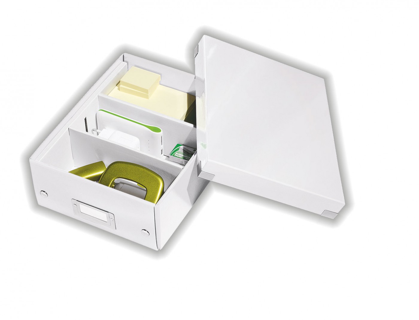 - Stylová skládací krabice s víkem a s rámečkem na štítek. Pro uspořádání nabíječek, kabelů a dalšího vybavení kanceláře. Velikost S.