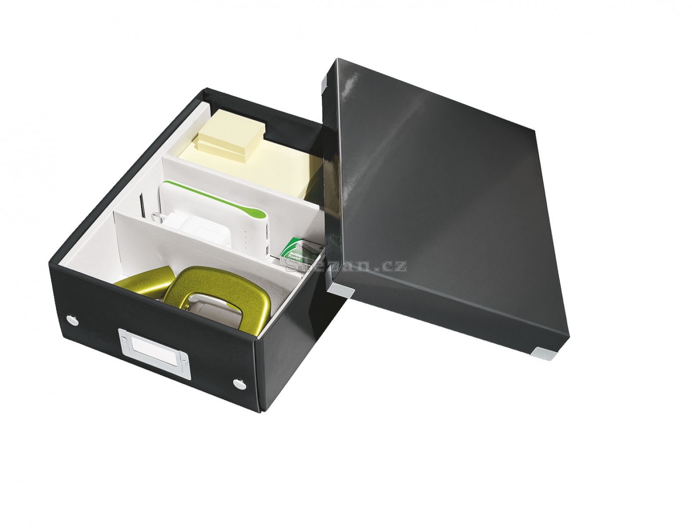 - Můžete rozdělit krabici na 2 nebo 3 části a zabránit tak míchání kabelů nebo fotek