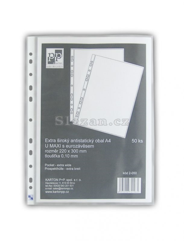 Standartní obal „ U“ s eurozávěsem formátu A4 vyroben ze silné čiro čiré fólie opatřen palcovým výsekem pro snadné vložení a vyjmutí dokumentu.