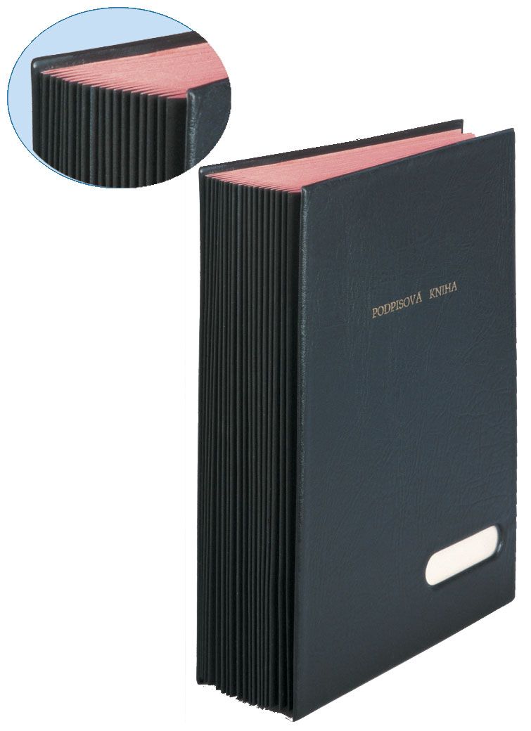 Pro přehledné a snadné předávání dopisů, smluv, dokumetů apod. Formát A4. Povrch koženka. Uvnitř tvrdý karton s otvory. Kniha obsahuje 16 dělících listů, štítek na podpis, roztažitelný hřbet zvyšuje kapacitu knihy.
