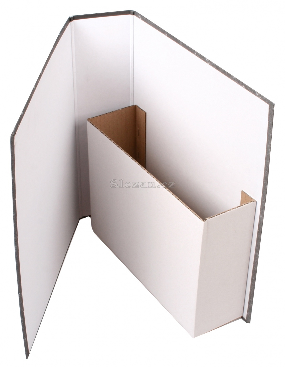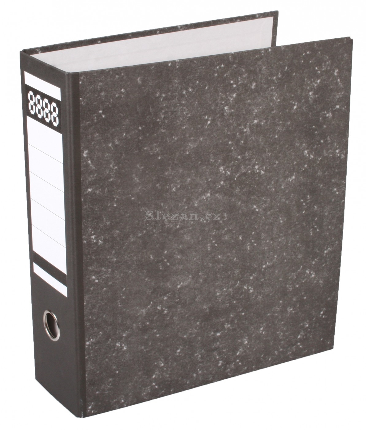 Kartonový pořadač formátu A4 s kapsou, vnější potah mramorovaný papír, vnitřní potah světlý papír. Šíře hřbetu 80 mm. Hřbetní otvor pro snadnou manipulaci. Mix barev.