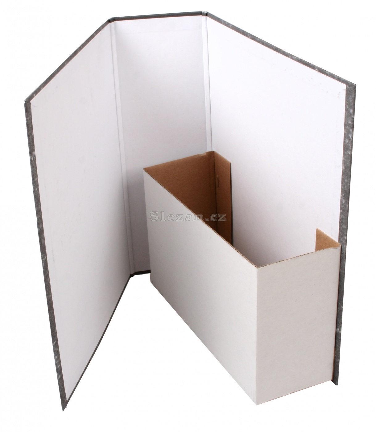 Kartonový pořadač formátu A5 s kapsou, vnější potah mramorovaný papír, vnitřní potah světlý papír. Šíře hřbetu 80 mm. Hřbetní otvor pro snadnou manipulaci. Mix barev.