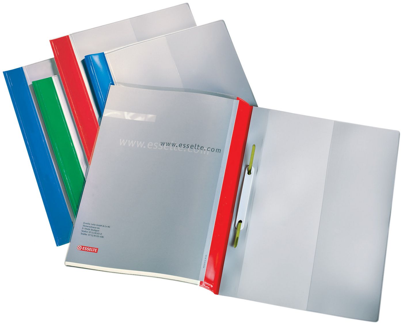Přední průhledná kapsa desek ve formě kapsy umožňuje vložení listu A4. Desky slouží k uložení děrovaných dokumentů do formátu A4. Desky jsou o 1,2 cm širší než běžné desky s rychlovazačem, a tak umožňují zakládání dokumentů uložených v plastových kapsách. Vyrobené z kvalitního PVC. Průhledná kapsa po celé délce zadní strany k uložení poznámek, CD, aj. Bílý papírový zasunovací štítek podél hřbetu slouží k označení obsahu desek.