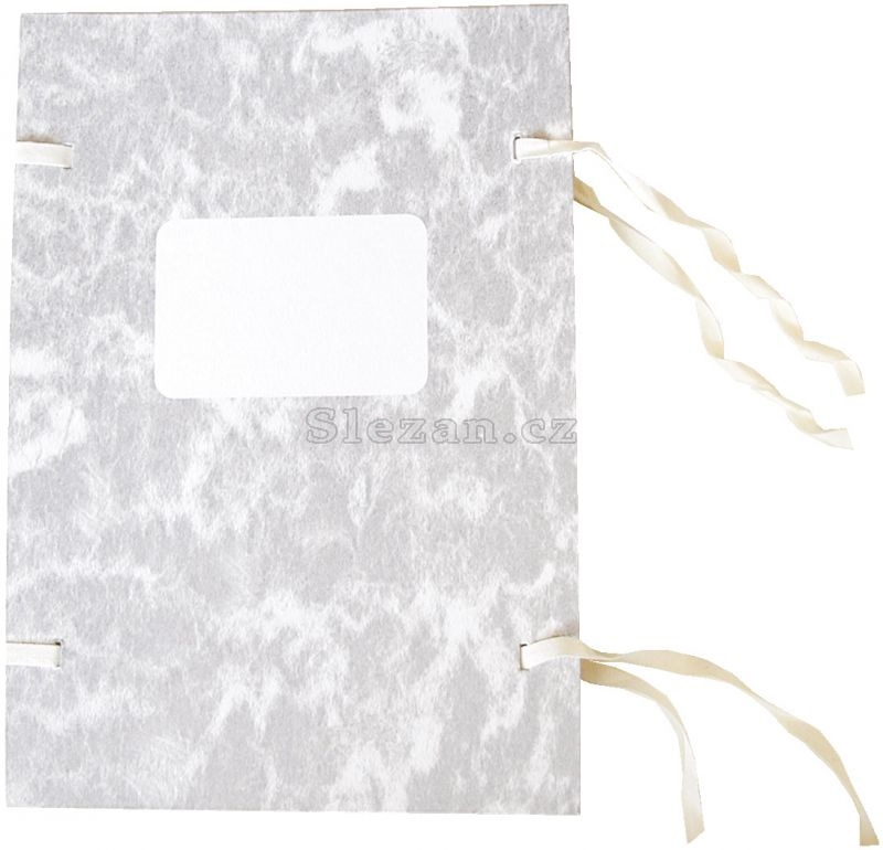 Tvrdý kartón s tkanicí bez hřbetu. Strojně potažená.