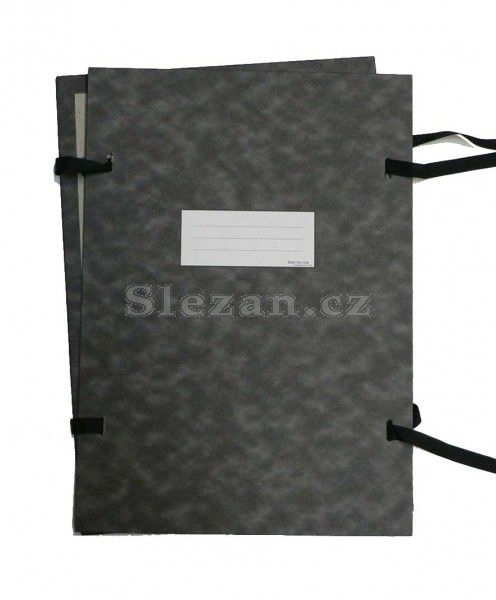 Tvrdý kartón s tkanicí bez hřbetu. Knihařsky potažená.