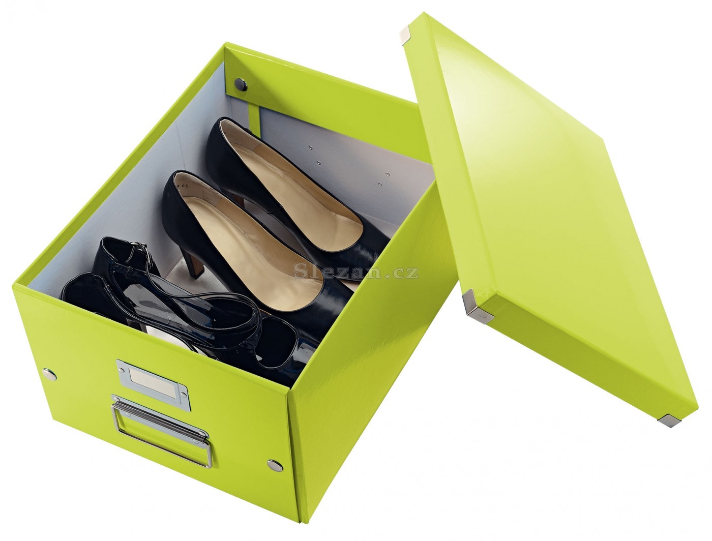 Stylová skládací krabice s víkem a s rámečkem na štítek. Na dokumenty formátu A4 v zářivých WOW barvách.