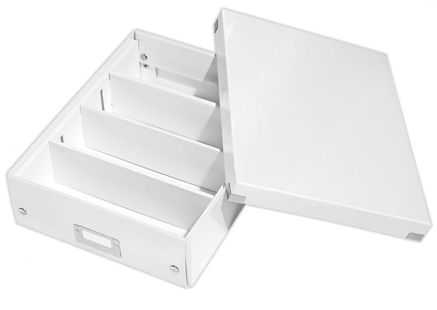 - Stylová skládací krabice s víkem a s rámečkem na štítek. Pro uspořádání nabíječek, kabelů a dalšího vybavení kanceláře. Velikost M.