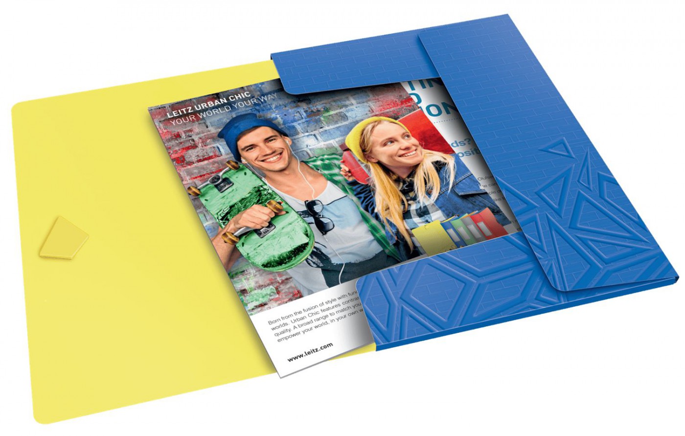 Vysoce kvalitní tříchlopňové desky z PP v kontrastních výrazných barvách Urban Chic. Pro každodenní ukládání dokumentů a volných, neuspořádaných papírů. Vzniklo spojením stylu a funkčnosti. Váš svět podle vašich představ!