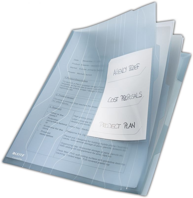 Kombinace desek a závěsné kapsy umožňuje flexibilní použití. Unikátní skrývatelná závěsná multiperforace. Kapsa v rohu desek chránící vložené dokumenty. Snadný přístup k dokumentům. Vhodné na cesty a přenášení dokumentů. Kapacita až 3 x 20 listů papíru (80 g/m2). 3 dělící listy v deskách umožňují třídit dokumenty. 3 ks v balení.