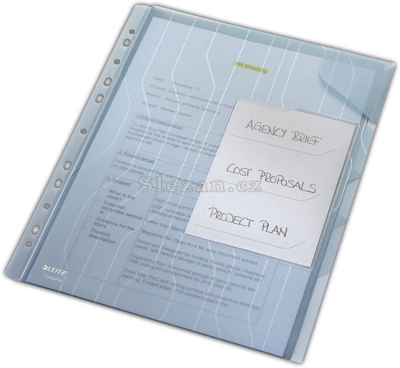 Kombinace desek a závěsné kapsy umožňuje flexibilní použití. Unikátní skrývatelná závěsná multiperforace. Kapsa v rohu desek chránící vložené dokumenty. Snadný přístup k dokumentům. Vhodné na cesty a přenášení dokumentů. Kapacita až 3 x 20 listů papíru (80 g/m2). 3 dělící listy v deskách umožňují třídit dokumenty. 3 ks v balení.