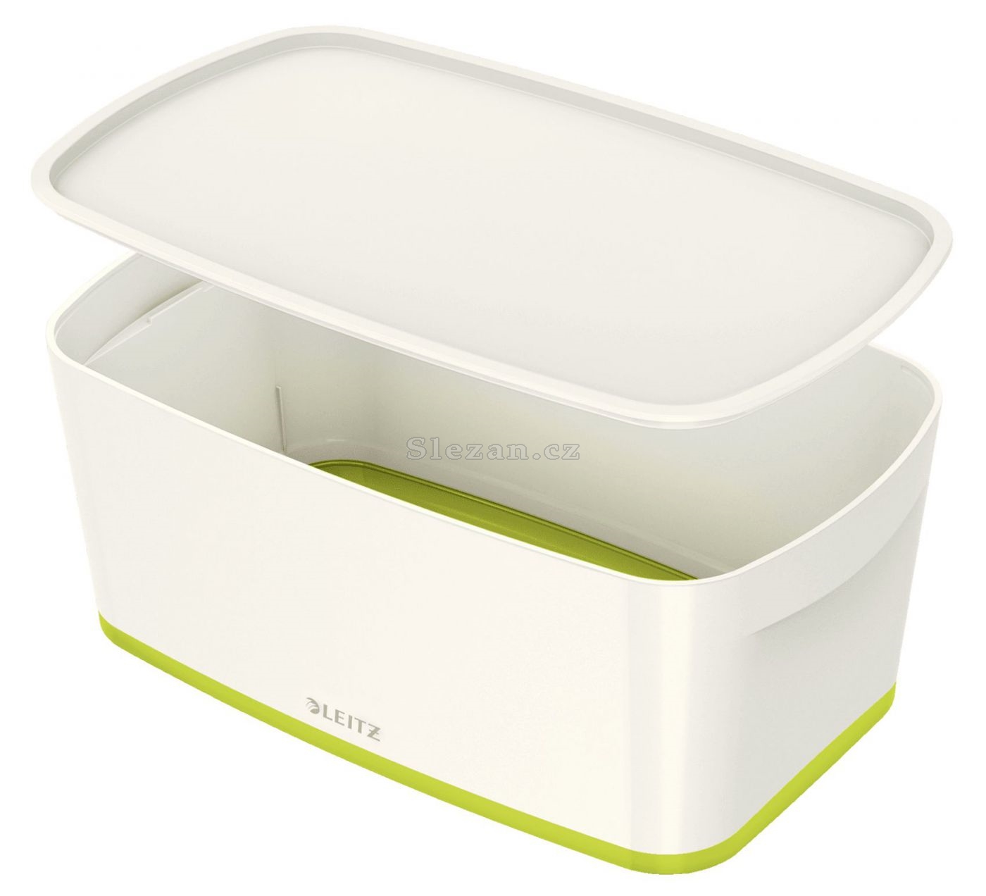 Popis Úložný box s víkem Leitz MyBox, velikost S, bílá/zelená