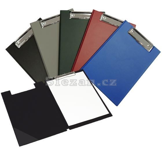 Uzavíratelné desky A5 s klipem. Materiál plastik. Vyrobeno ze silné lepenky. Je opatřena rychloupínacím klipem s háčkem, který umožňuje zavěšení na zeď.