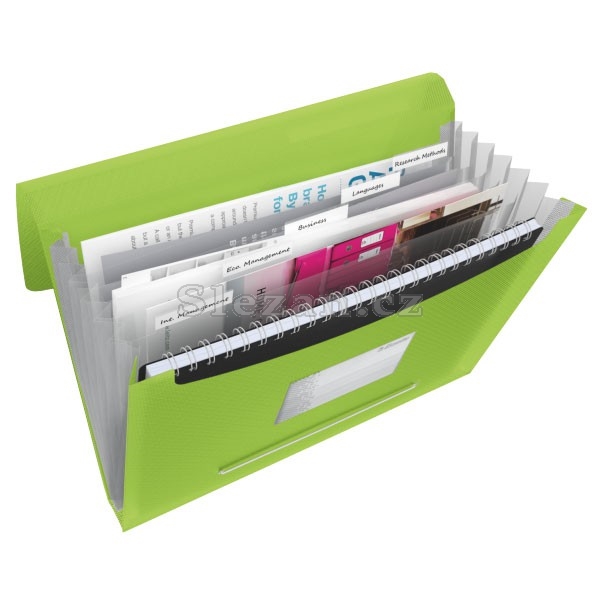 Aktovka na spisy ve svěžích barvách a čtverečkovaném designu Vivida. Vyrobeno z průhledného polypropylenu tloušťky 0,67 mm. Ideální k roztřídění dokumentů do 6 rozšiřitelných přihrádek.