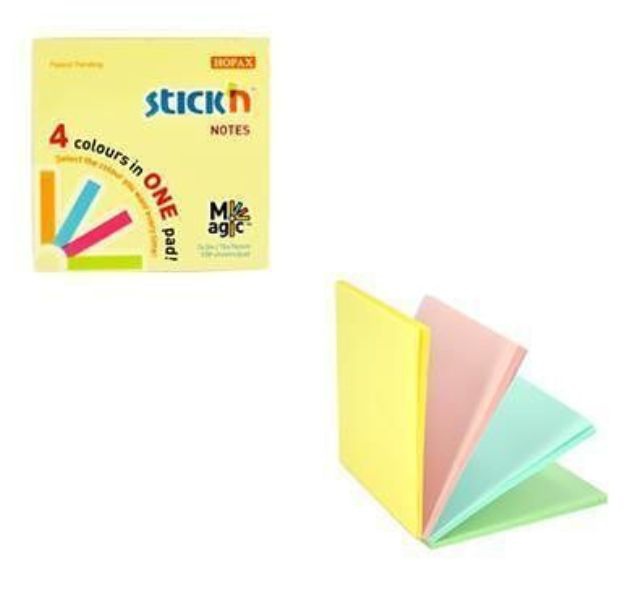 Blok lepici Stickn, 76x76 mm, 100 lístků, 4 barvy pastelové