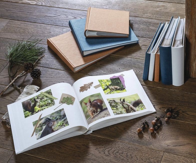 - bílé vnitřní listy poskytují prostor pro vaše příběhy a vzpomínky (fotografie, kresby, texty, pohlednice, vstupenky …)