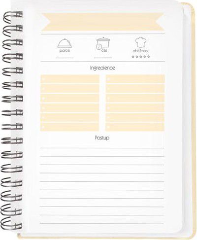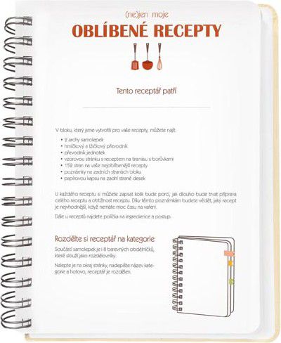 Kniha na recepty se spoustou praktických vychytávek.