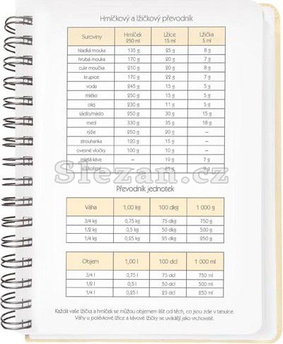 Uvnitř najdete: - 2 archy samolepek - hrníčkový a lžičkový převodník - převodník jednotek - vzorovou stránku s receptem na tiramisu s borůvkami - 152 stránek pro vaše oblíbené recepty - poznámky na zadních stranách bloku - papírovou kapsu na zadní straně desek