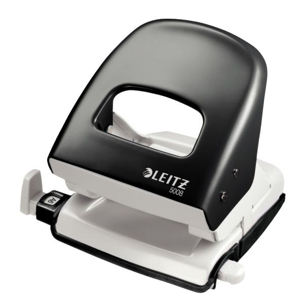 Popis Celokovová stolní děrovačka Leitz 5008 černá