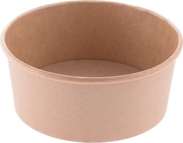 Hnědá papírová miska, ideální pro podávání a přepravu jídel s sebou, zejména těstovin a salátů.
