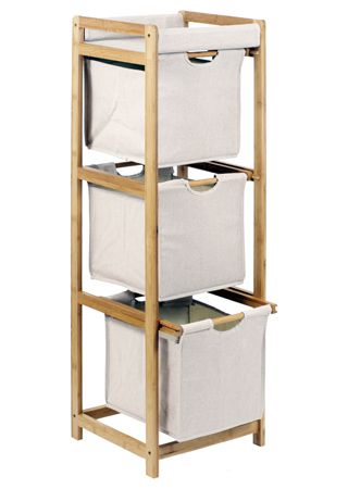 Regál se 3 šuplíky v provedení lakovaný bambus a látka.
