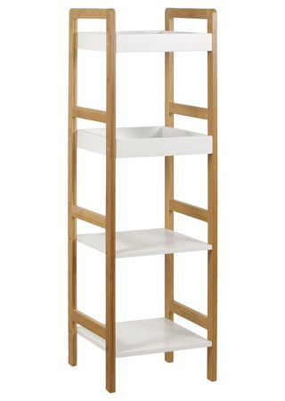 Regál 4 police v provedení lakovaný bambus/bílá MDF.