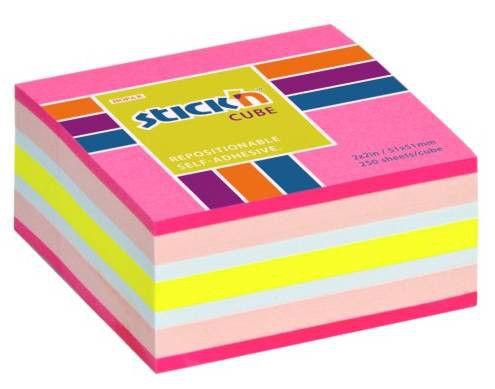 Samolepící bločky ve tvaru kostky 51 x 51 mm. 5 vrstev po 50 lístcích v osvěžujících odstínech neonových a pastelových barev.