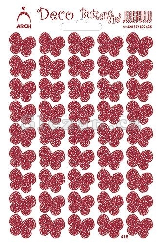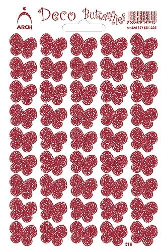 Popis Samolepka Motýlci fialoví Butterflies 416-V červená glitr