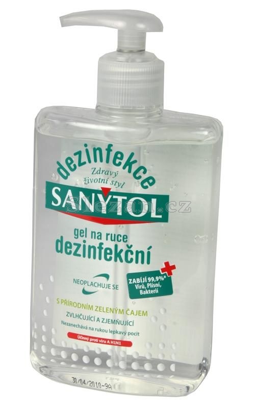 Dezinfekční gel Sanytol ničí 99,99 % bakterií, plísní a virů bez vody a mýdla.