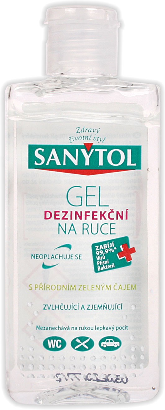 Dezinfekční gel Sanytol ničí 99,99 % bakterií, plísní a virů bez vody a mýdla.
