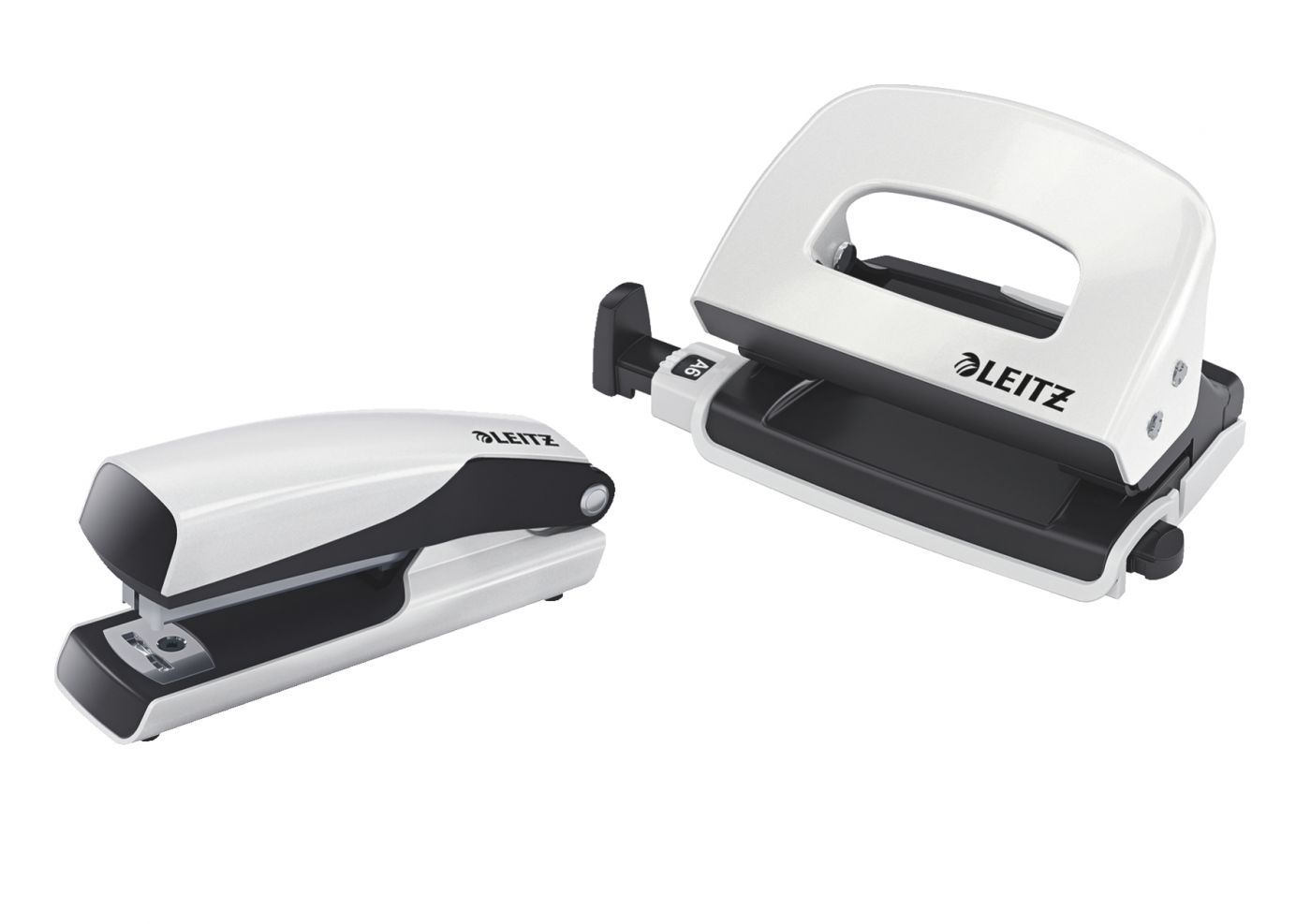 Popis Set sešívačky a děrovačky Leitz perleťově bílý