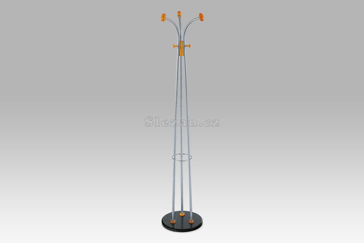 Kovový věšák v provedení stříbrný matný lak s podstavcem z umělého kamene a dřevěnými detaily.
