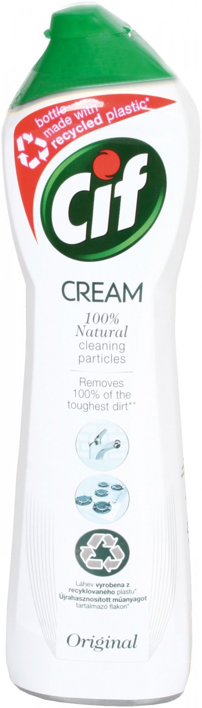 Cif obsahuje jemné mikročástice křemičitého písku, který je velmi jemný a dále obsahuje čistící prostředek, kterým je tento jemný píseček svázán dohromady, díky této kombinaci je CIF tak silný čistič.