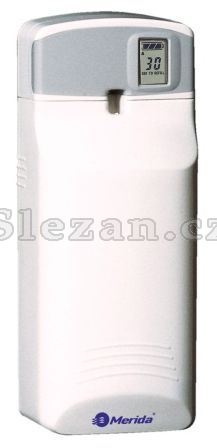 elektronický displey informující o obsahu nabití baterií, o počtu dní zůstávajících do výměny zásobníku s vůní, o zapnutí nebo vypnutí zvukového signálu (upozorňujícího na potřebu výměny baterií nebo zásobníku s vůní)