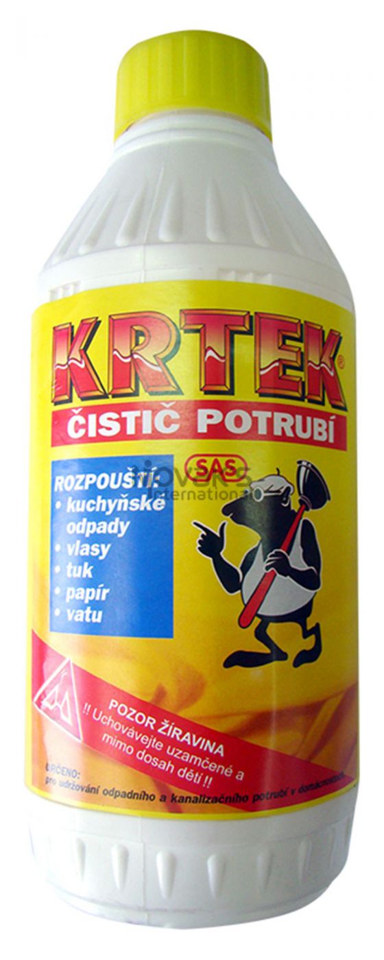 Za stálého tlaku na uzávěr otvírejte ve směru šipky. Do sifonu umývadla, výlevky, vany, WC nalijte přibližně půl litru velmi horké vody. Poté vsypte 2-3 víčka Krtka, v závislosti na velikosti sifonu. Nechte působit asi 10 minut a pak propláchněte horkou vodou a průchodnost odpadu zkontrolujte větším proudem tekoucí vody. Při větším zanesení zopakujte po dvou dnech, preventivně po dvou týdnech.
