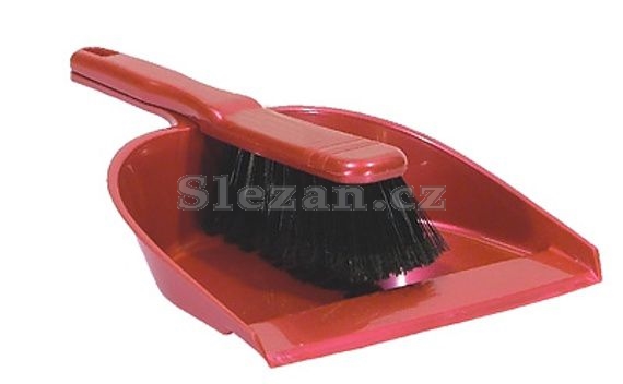 Lopatka se smetáčkem. Lopatka má plastovou hranu.
