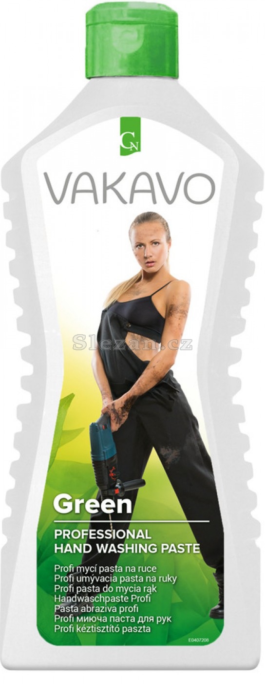 Vakavo mycí pasta - profesionální mycí pasta určená k odstranění středně až vysoce odolných nečistot jako jsou oleje, tuky, maziva, asfalt, nafta, saze, pryž. Použitelná zejména v technických službách a těžkém průmyslu. Glycerin zaručuje pokožce po umytí vhodnou regeneraci. Tento výrobek je zvláště vhodný pro pracovníky ve stavebnictví, zemědělství, ale také pro domácí kutily.