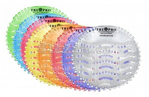 Aromatické a gelové vonné sítko FrePro Wave2 do pisoáru s indikátorem data výměny.Velice příjemná a decentní vůně, která je 15x intenzivnější než mají běžná vinylová sítka. Eliminuje pachy a optimizuje tvorbu bakterií, zabraňuje šíření pachů hned v jejich zárodku. Výrobce garantuje plnou účinnost po dobu 30 dnů. Speciálně vyvinutý design zajišťuje rychlejší a účinnější splachování obsahu pisoáru, mísa se průběžně čistí. Úspora času pro úklid až 50%. Transparentní design umožňuje průběžnou kontrolu stavu odpadních cest, účinněji brání ucpávání. V procesu působení sítko uvolňuje účinné bakterie– pohlcovače pachů a vonné látky, proto se mírně smršťuje. Kulatý tvar umožňuje umístění do každého typu pisoáru. Neobsahuje žádné látky poškozující ozon, ani žádné látky ohrožující lidské zdraví. Delší bodlinky účinněji zabraňují rozstřikávání moči, usnadňují očistu pisoáru a uvolňují více vůně do prostoru. Sítko se vkládá do pisoáru bodlinkami nahoru.