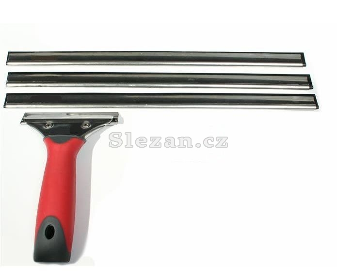 Profesionální stěrka na okna dlouhá 45 cm s vyměnitelnou lištou a vyměnitelnou stírací gumou. Nastavitelná protiskluzová gumová rukojeť.