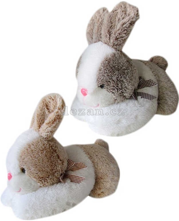 Roztomilý, ležící králík s károvanou mašličkou kolem krku, ve dvou barevných variantách, pro všechny milovníky plyšových zvířátek.