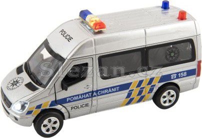Kovové autíčko pro malé policisty je vyrobeno s plastovými doplňky.